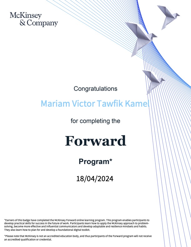 Participating in the McKinsey Forward Program has significantly enhanced my workplace skills, particularly in effective communication, problem-solving techniques, and Agile methodologies. Additionally, the Oyster remote work course has equipped me with the skills to thrive in a remote setting and maintain a healthy work-life balance. Consequently, I am well-prepared to work anywhere, seamlessly integrating into diverse teams and contributing effectively to organizational success.